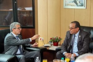 وشملت الجولة لقاء أموي مع اللواء بحري أركان حرب وائل السماديسي، رئيس هيئة ميناء نويبع، لمناقشة تطوير حركة التجارة، وتحسين إدارة المهمل والمخازن، وضمان تحقيق الانضباط والشفافية.