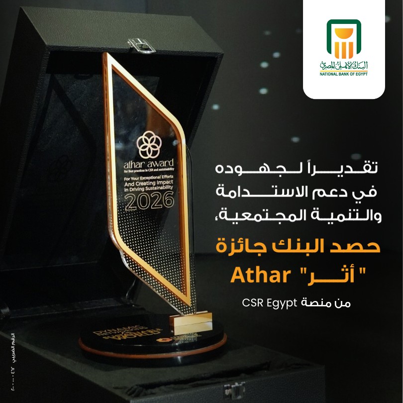البنك الأهلي المصري يحصد جائزة «Athar » تقديرًا لجهوده في التنمية المجتمعية