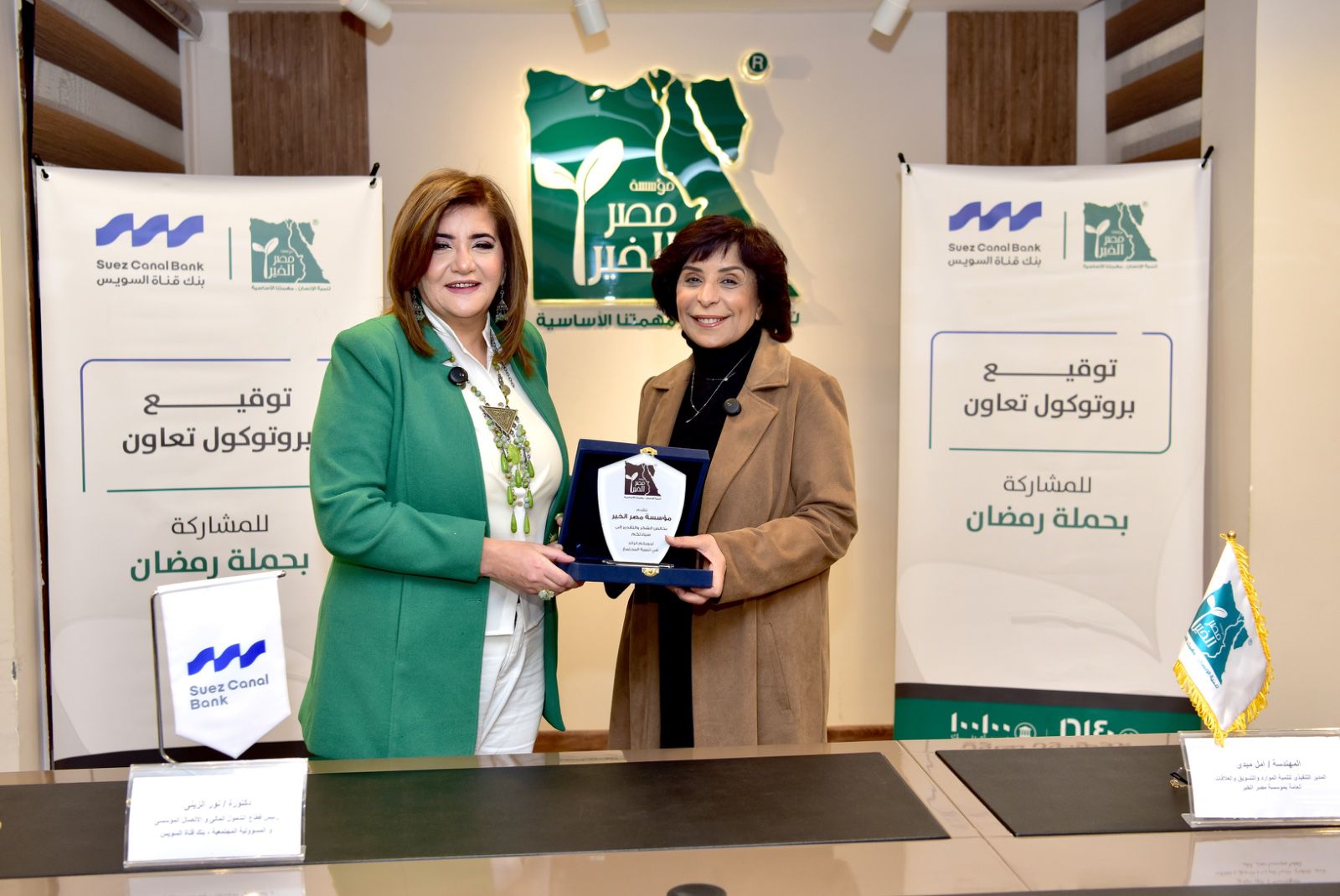 وقام بالتوقيع على البروتوكول كلٍ من نور الزيني، رئيس قطاع الشمول المالي، الاتصال المؤسسي، والمسئولية المجتمعية ببنك قناة السويس، والمهندسة أمل مبدي، المدير التنفيذي تنمية الموارد والتسويق والعلاقات العامة بمؤسسة مصر الخير، وذلك بحضور عدد من ممثلي الجانبين.