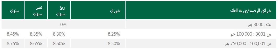 • يتم احتساب العائد شهريًا على أقل رصيد دائن يزيد عن 3000 جنيه، ويتم تعليته على الحساب وفقًا لدورية الصرف.