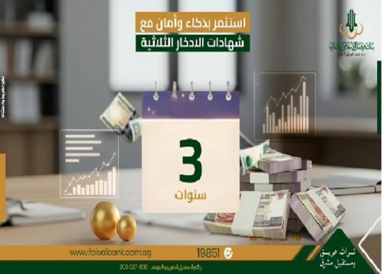 تفاصيل شهادات الادخار الثلاثية من بنك فيصل الإسلامي
