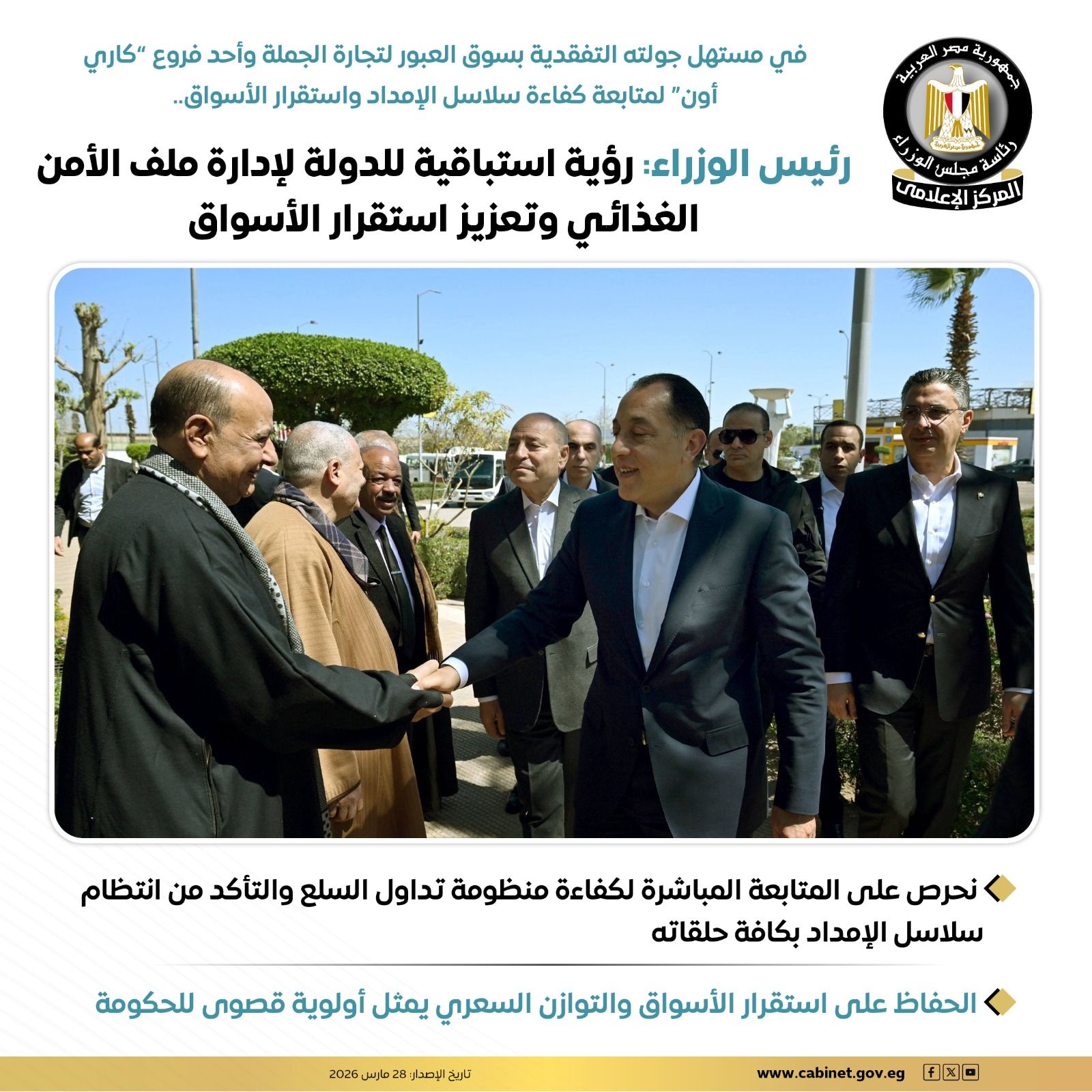 رئيس الوزراء: رؤية استباقية للدولة لإدارة ملف الأمن الغذائي وتعزيز استقرار الأسواق