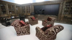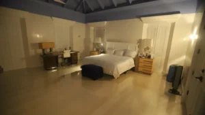 وتُظهر الصور والفيديوهات الجديدة غرف نوم وحمامات مفروشة جزئيًا، مكتب مزخرف وكرسي طبيب أسنان في غرفة صغيرة مزينة بأقنعة رجال على الجدران، إضافةً إلى سبورة مكتوب عليها كلمات مثل “السلطة”، “الخداع”، “السياسة”، “الحقيقة”، و”الموسيقى”، مع حذف بعض الكلمات قبل النشر.