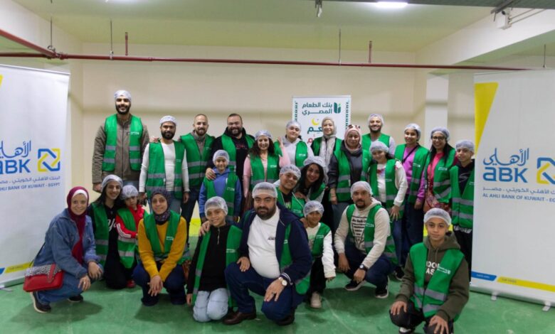 موظفو البنك الاهلى الكويتى وأسرهم يتطوعون لتعبئة كراتين رمضان بالتعاون مع بنك الطعام ضمن "أطعم وأكرم" 2026
