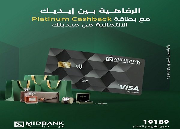 ميدبنك يطلق بطاقة Visa Platinum Cashback بمزايا استثنائية وكاش باك 5% على المشتريات